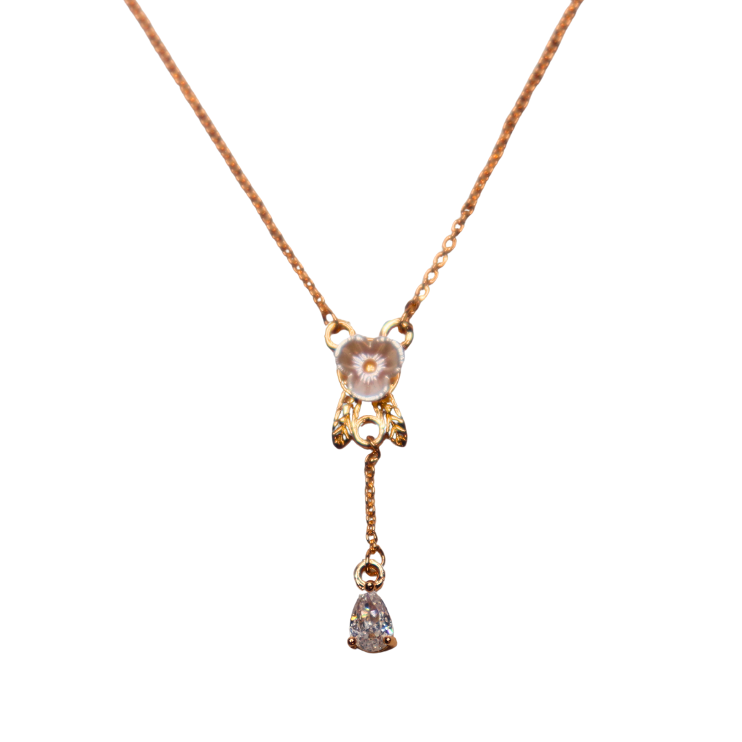Rose Gold Flower Pendant Necklace with CZ Drop