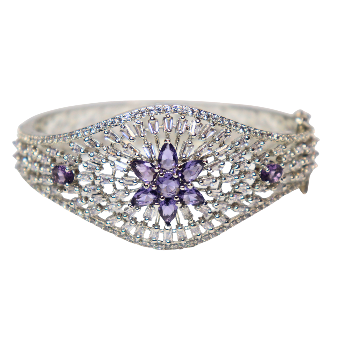 American Diamond Studded Floral Bracelet with Purple Stones