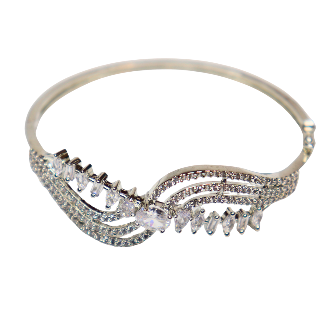 Sparkling CZ Wavy Silver-Toned Bangle Bracelet for Women