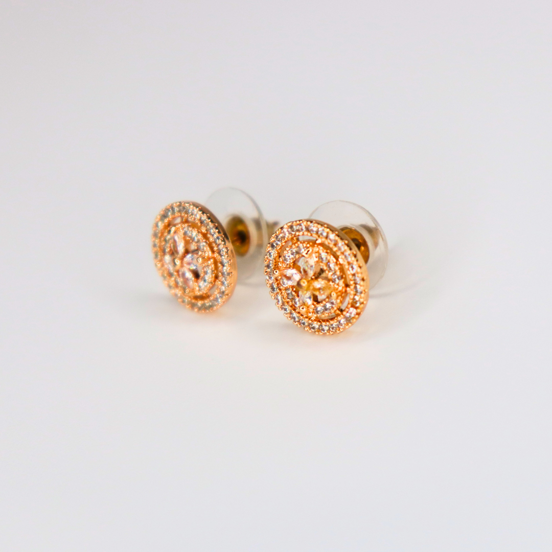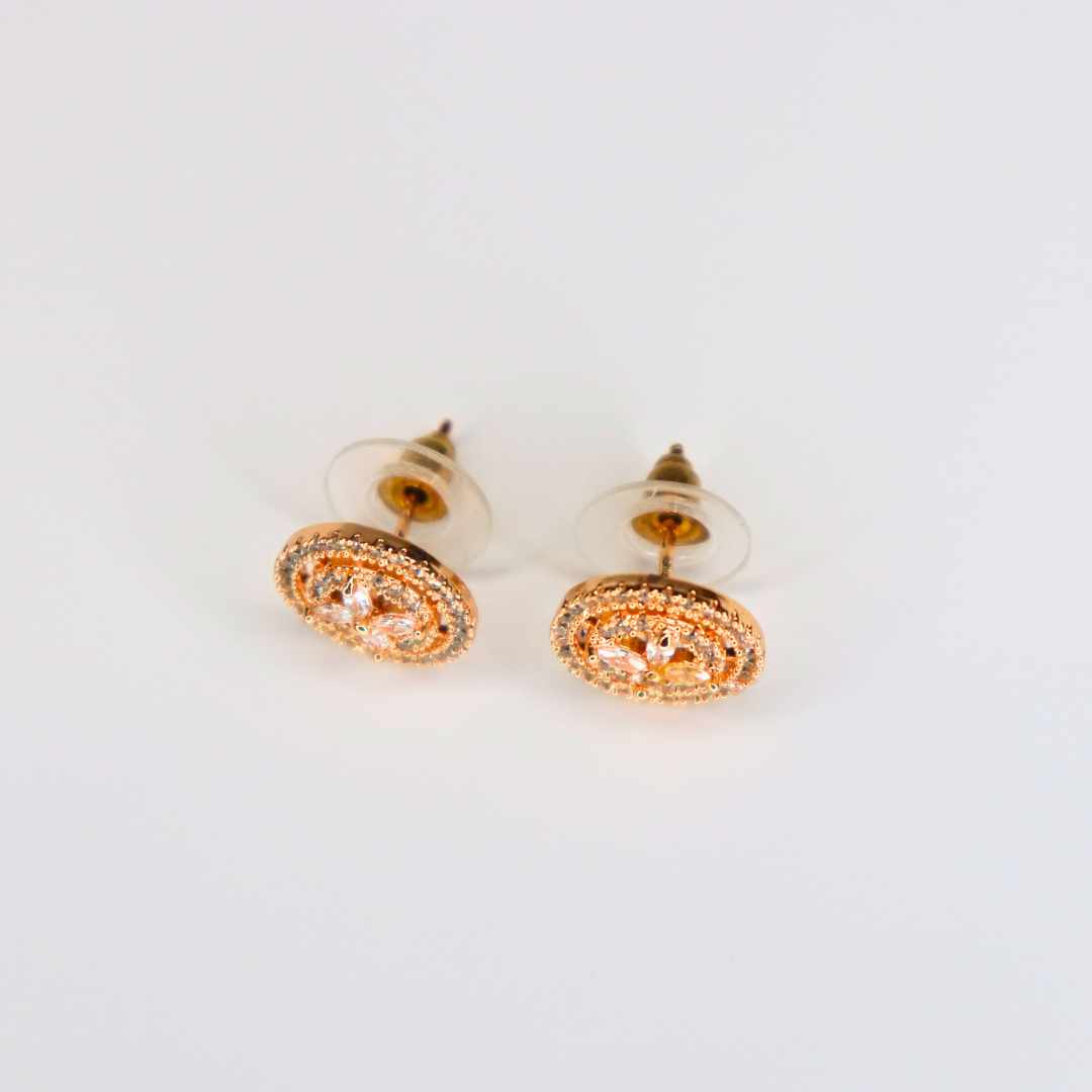 Add timeless sparkle to your look with these American Diamond Rose Gold Stud Earrings. Featuring a round floral design with dazzling cubic zirconia stones, these earrings strike the perfect balance between elegance and modern style. Lightweight and comfortable, they are ideal for daily wear, festive occasions, weddings, or parties. A versatile pair that complements both ethnic and western outfits, making it a must-have addition to every woman’s jewellery collection.