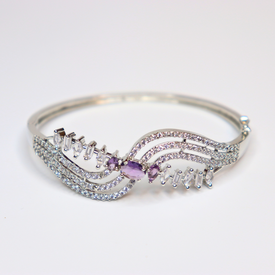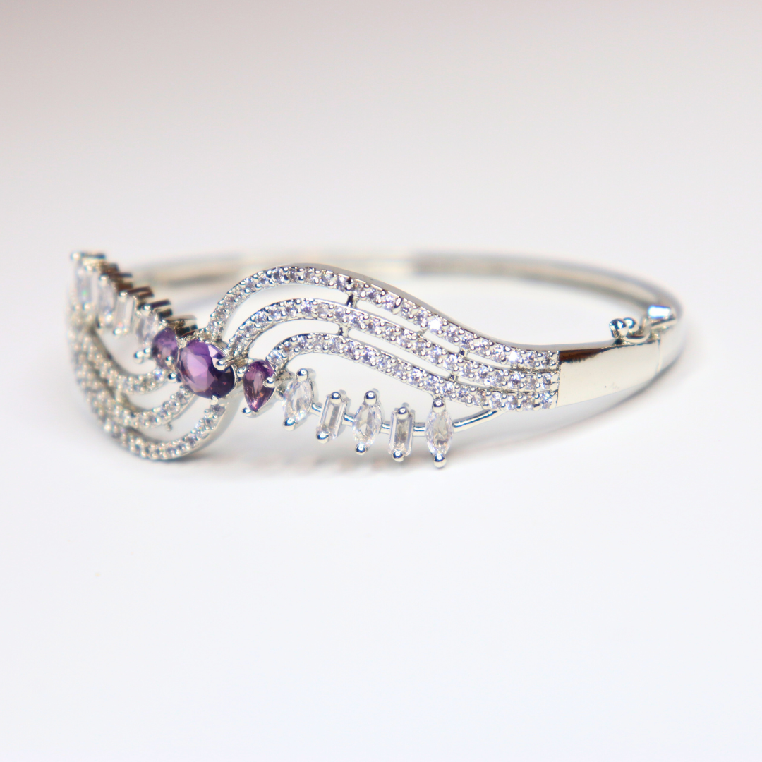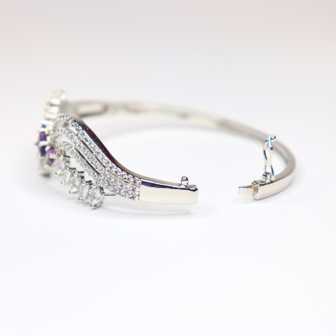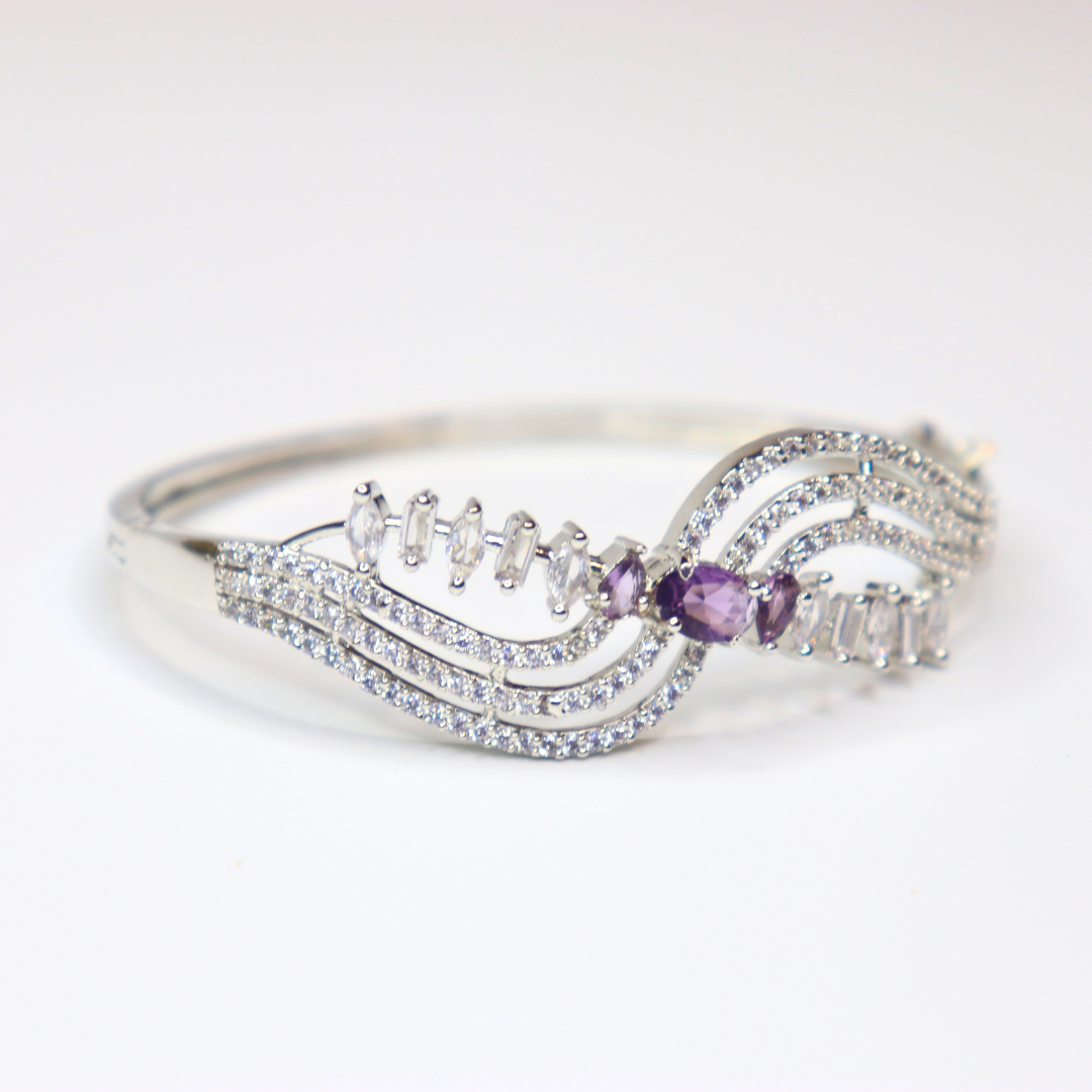 Regal Purple Stone CZ Wavy Silver-toned Bangle for Women