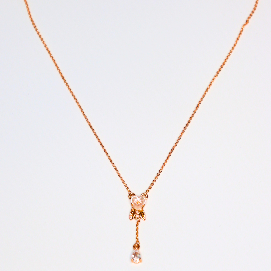 Rose Gold Flower Pendant Necklace with CZ Drop