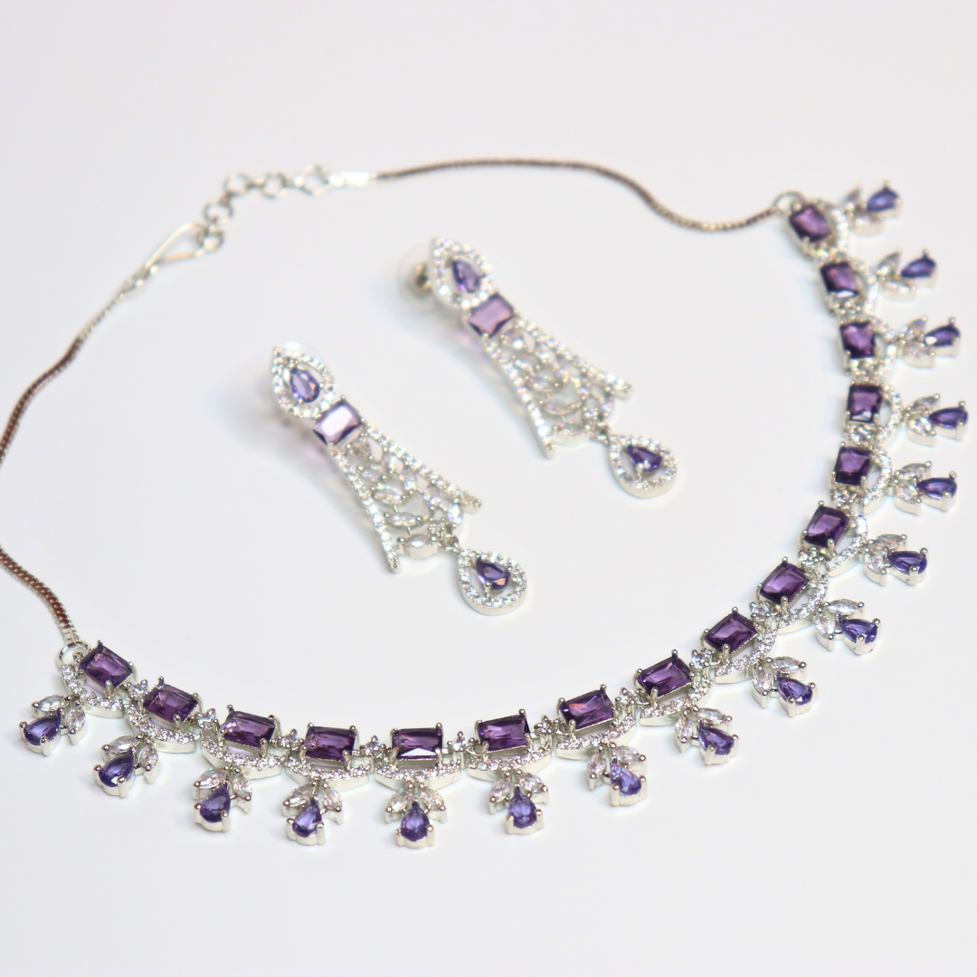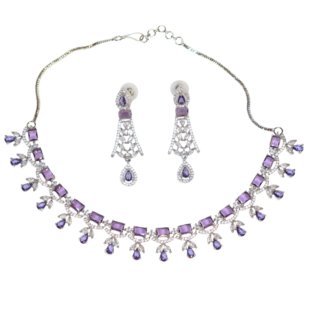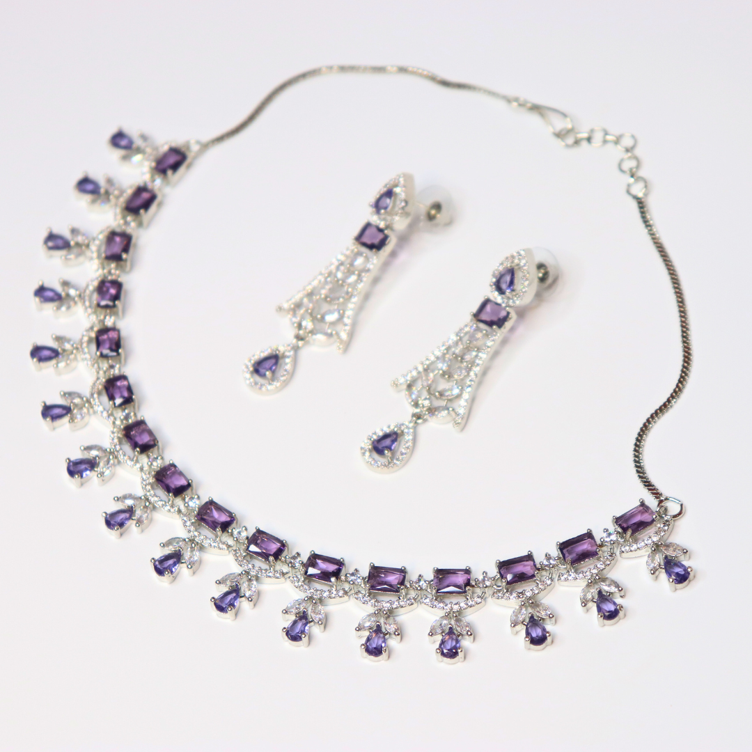 Silver-Plated Purple Stone American Diamond Necklace Set