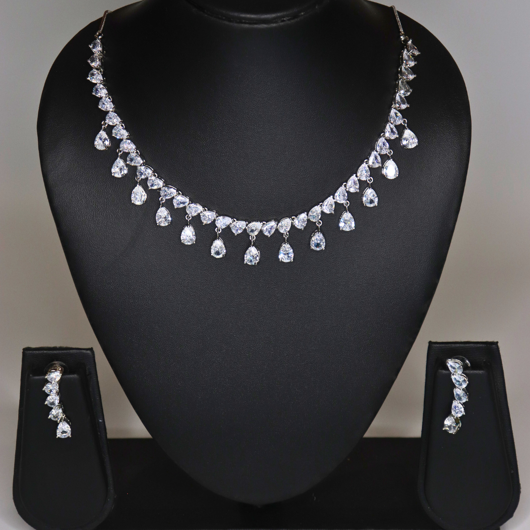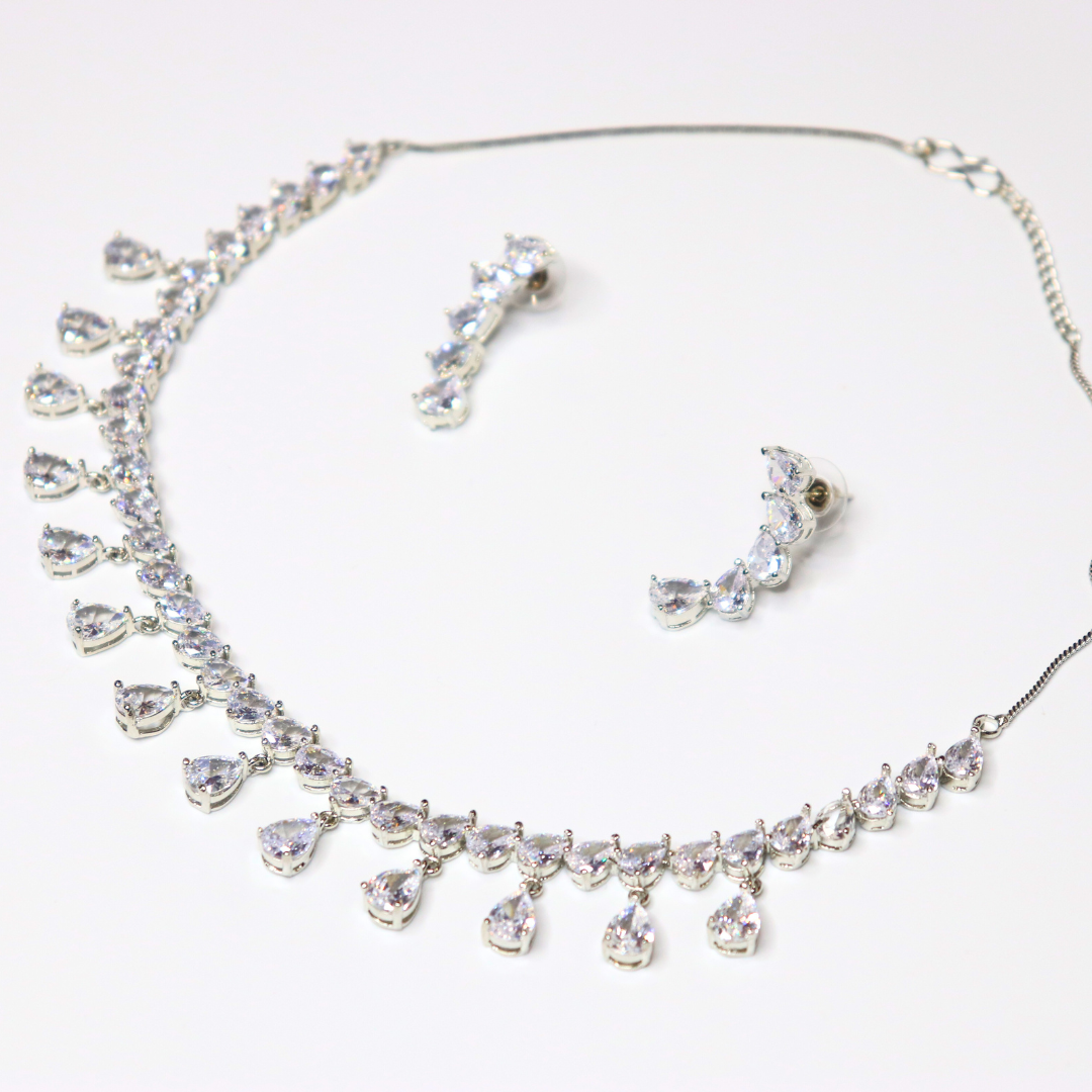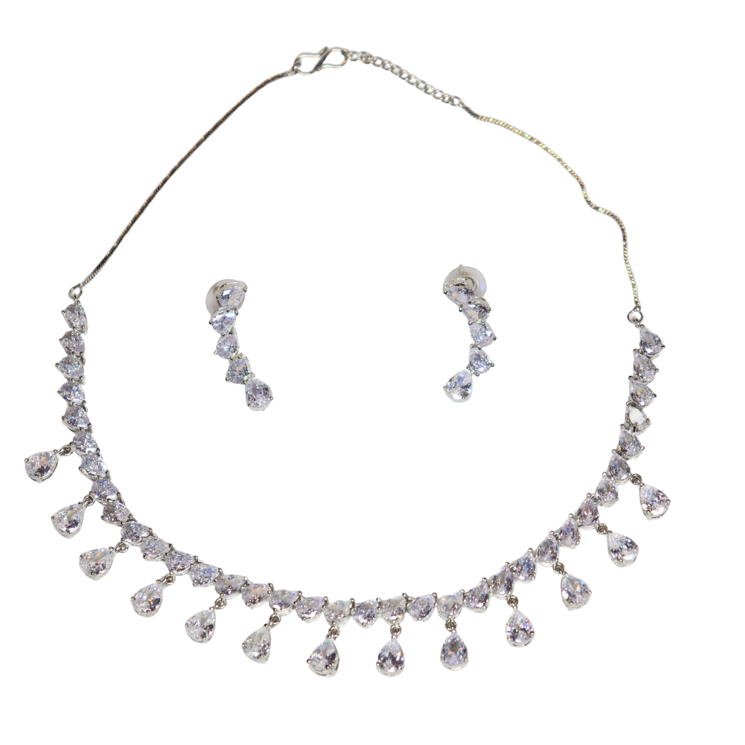 Silver-Plated Sparkling American Diamond Drop Necklace Set