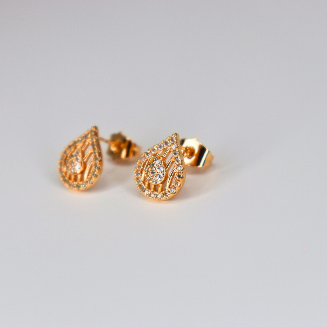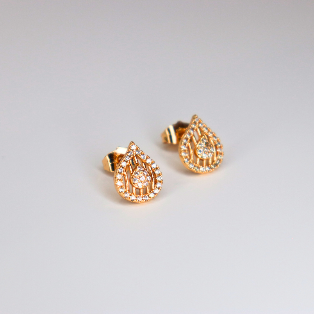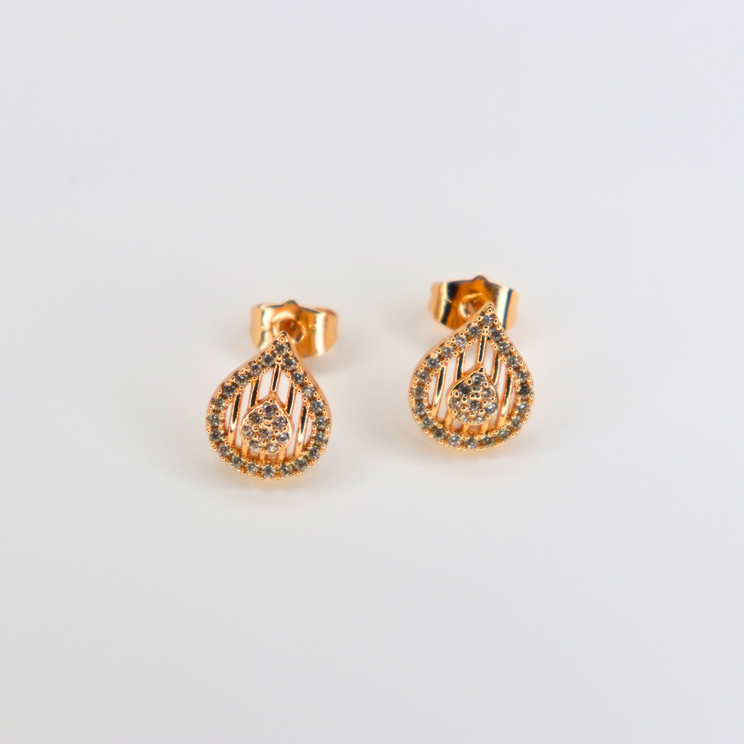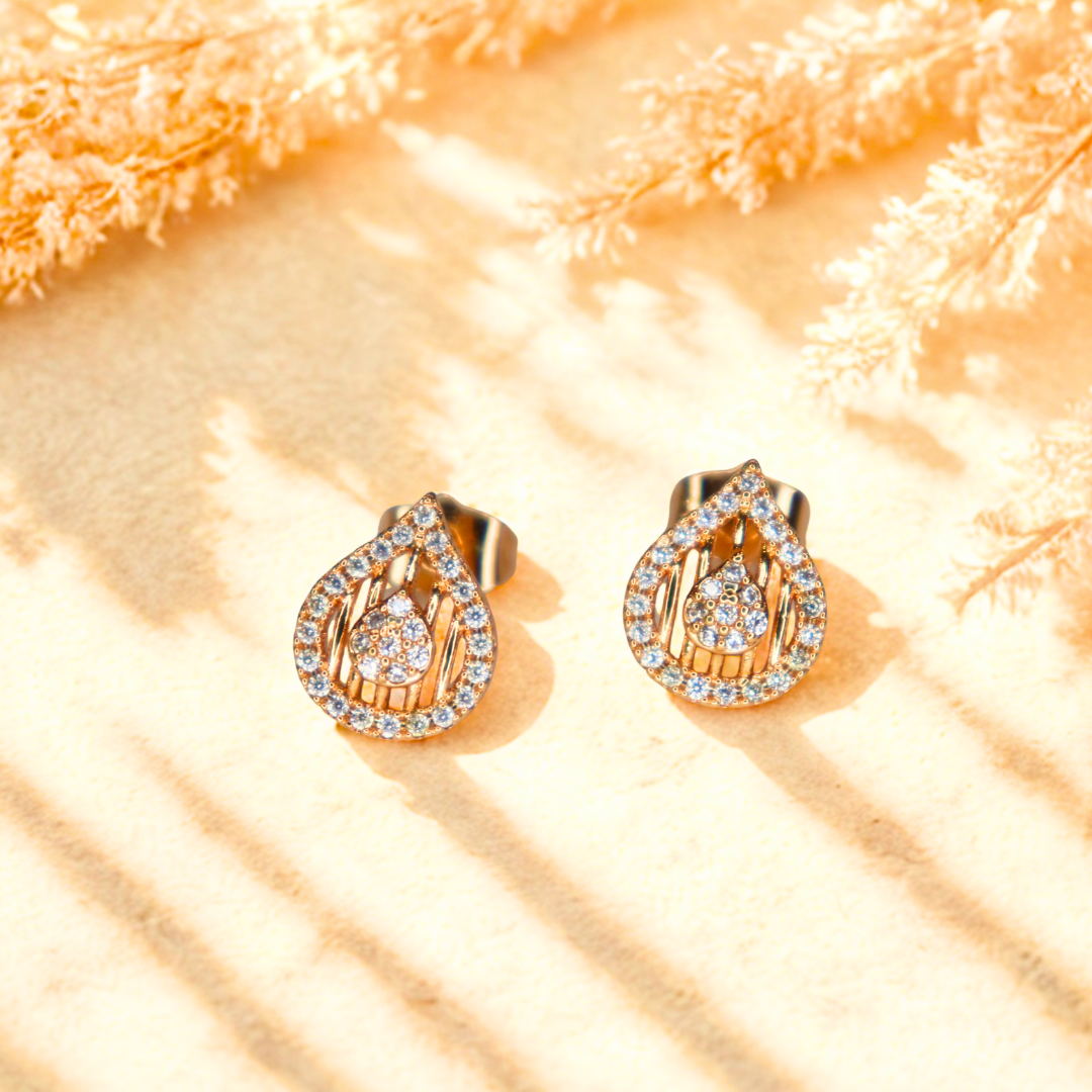 Teardrop American Diamond Stud Earrings – Golden Finish